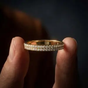 טבעת אירוסין קלאסית משובצת יהלומי צד
