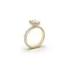 טבעת אירוסין משובצת יהלום אובל מרכזי, המוקפת במעטפת זוהרת של 152 יהלומים קטנים, היוצרים אפקט תאורה מסנוור מכל כיוון.