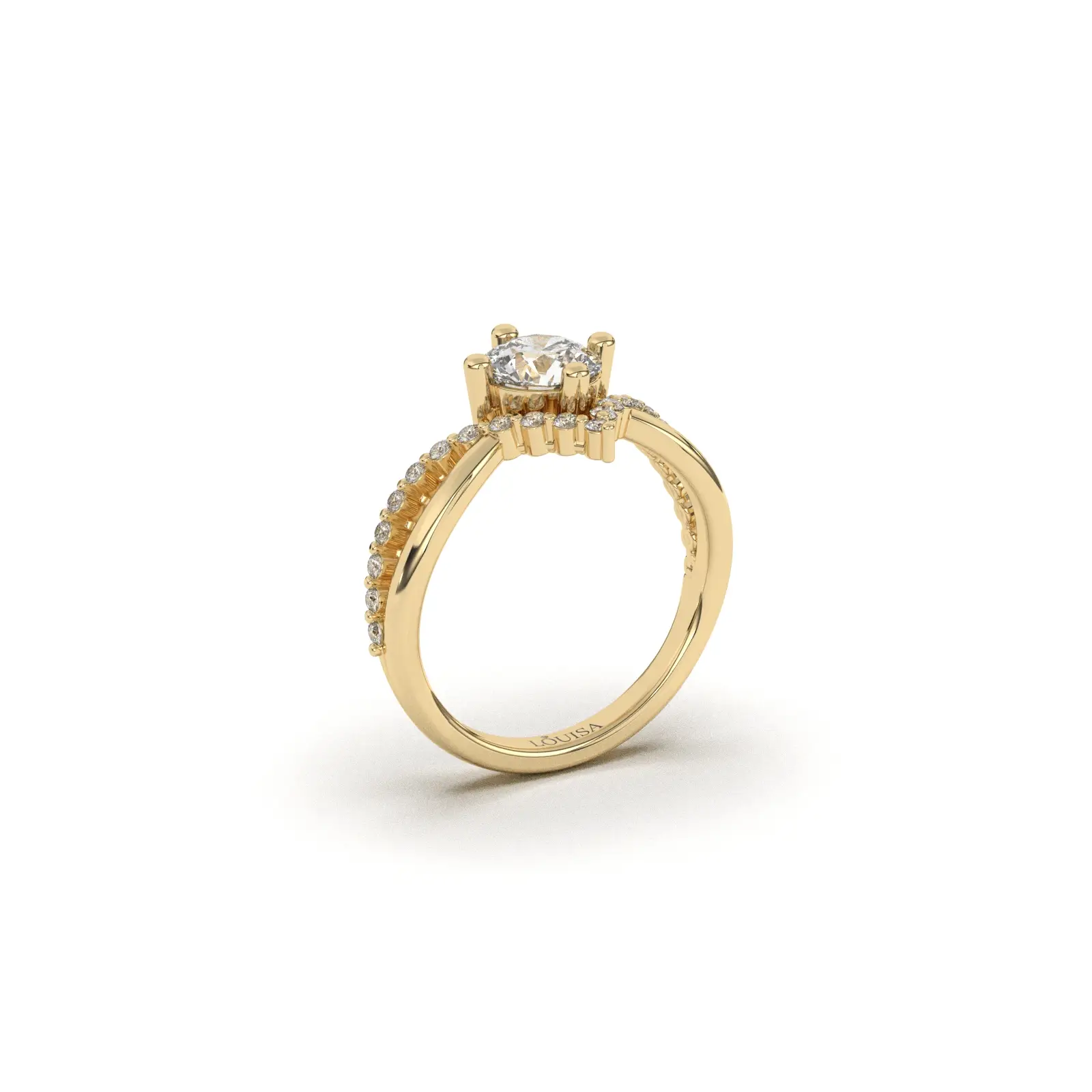 העיצוב הייחודי מבוסס על מבנה "זרוע מפוצלת" היוצר הרמוניה מושלמת על האצבע: זרוע אחת מובילה בגאווה ליהלום המרכזי העגול,