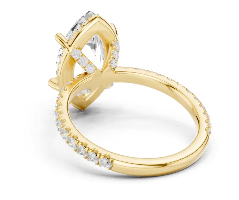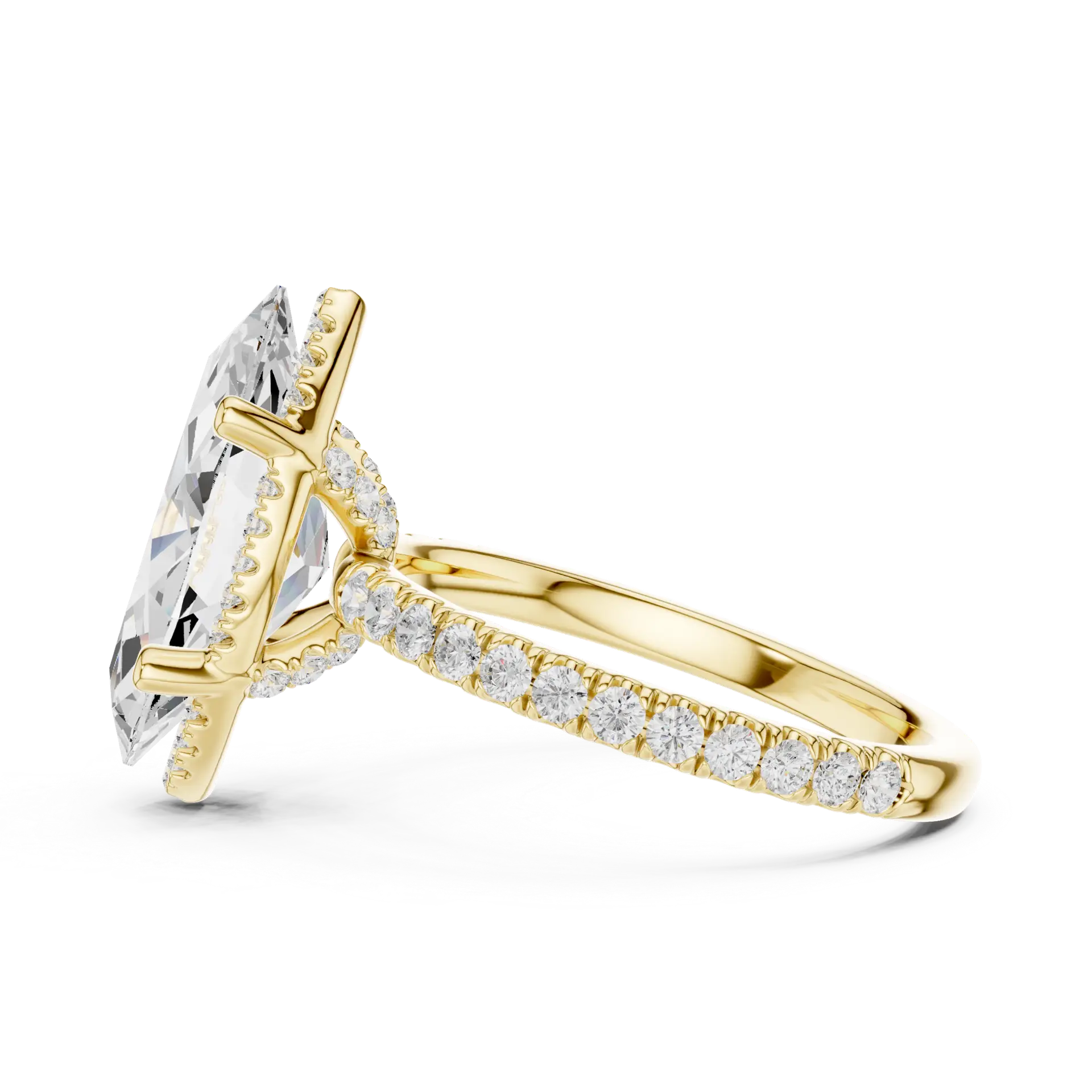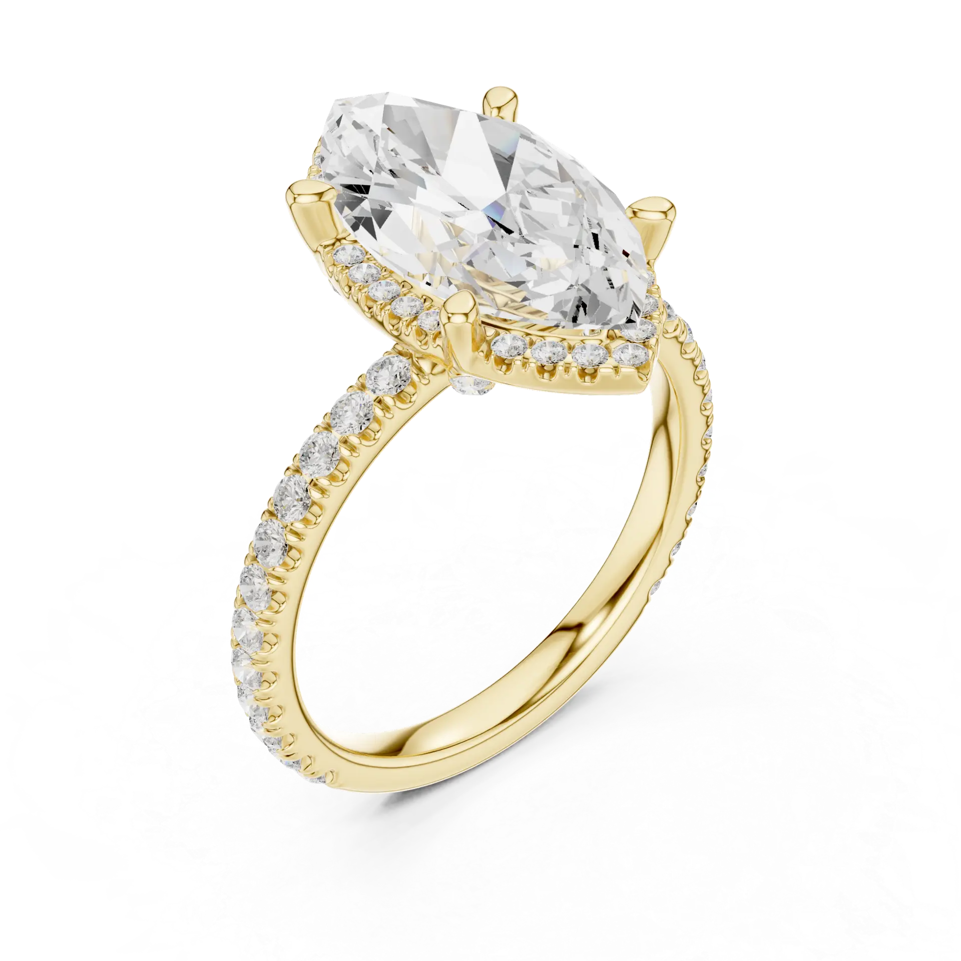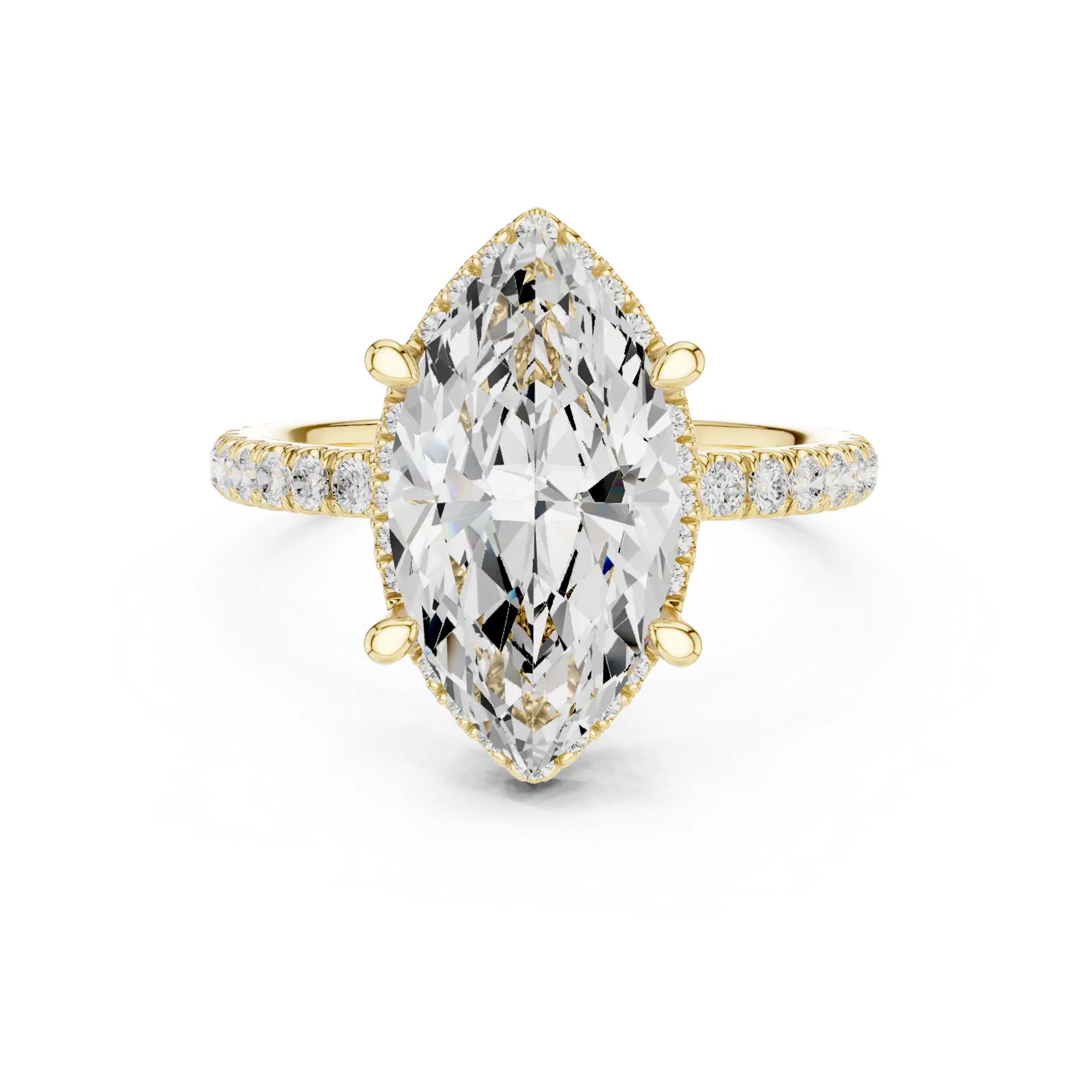 ההילה (Halo): 24 יהלומים עגולים עוטפים את המרקיזה ומעצימים את האור שלה.