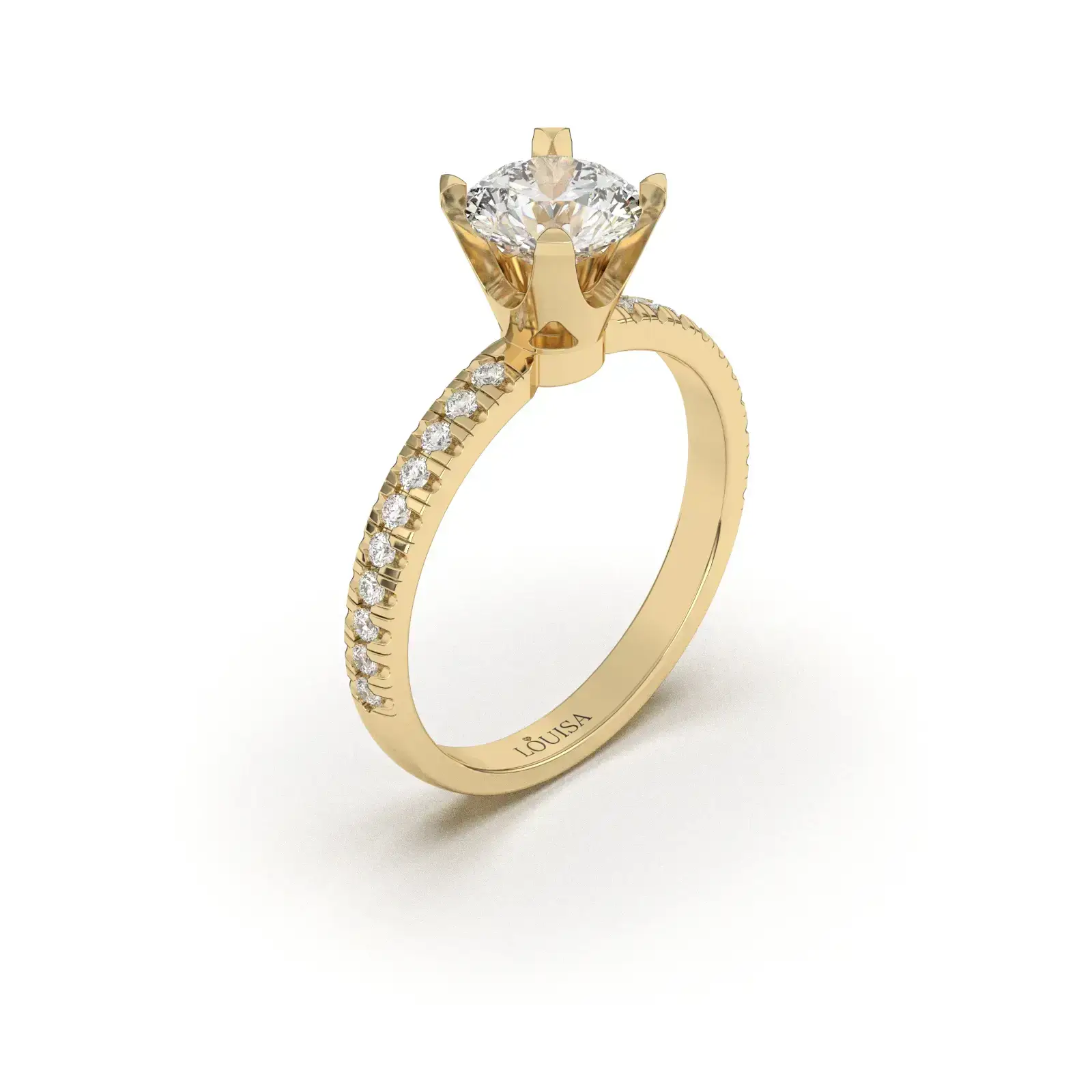 עיצוב המשלב את היוקרה הנקייה של טבעת אירוסין קלאסית, עם שובל של אור המלווה את היהלום המרכזי ומעצים את נוכחותו.