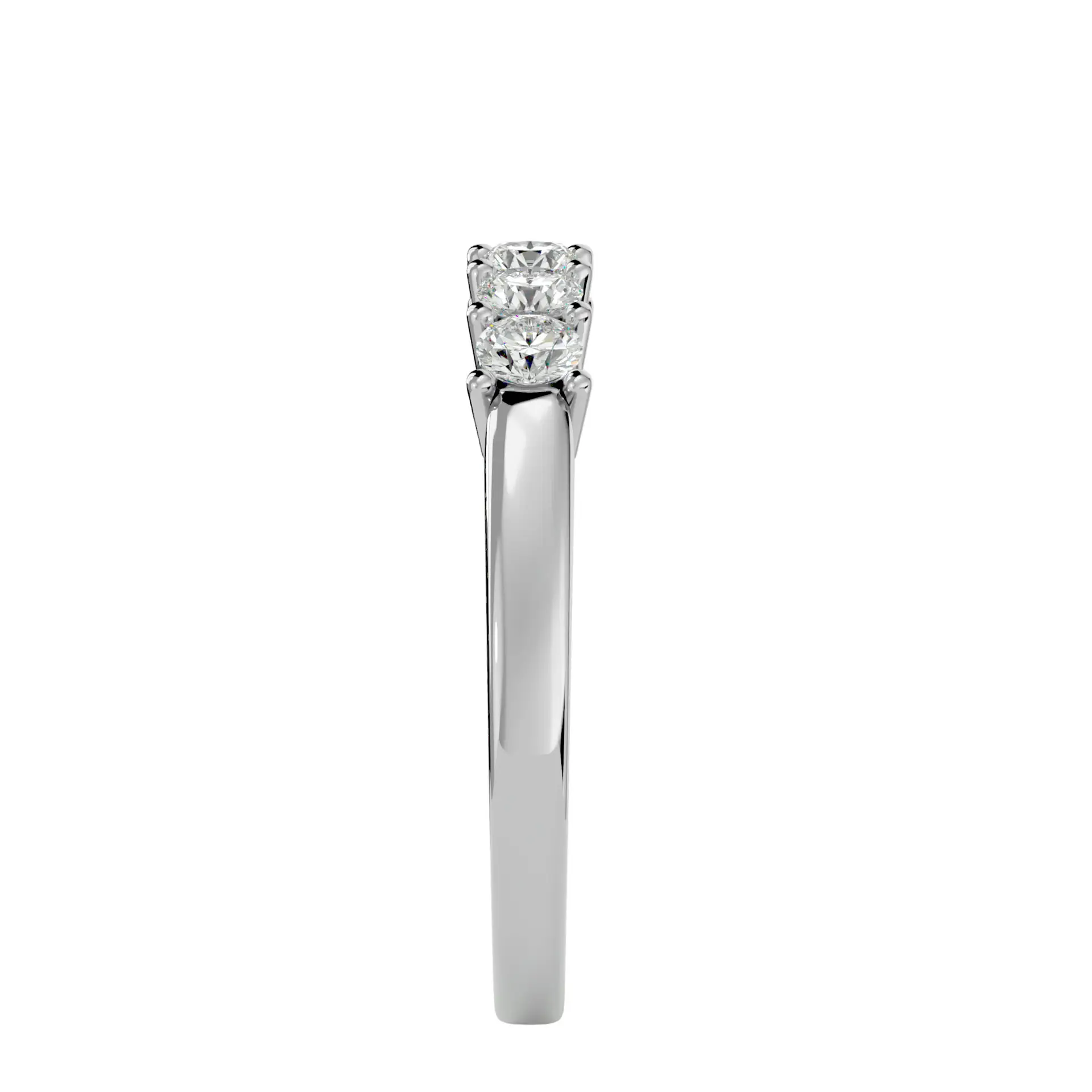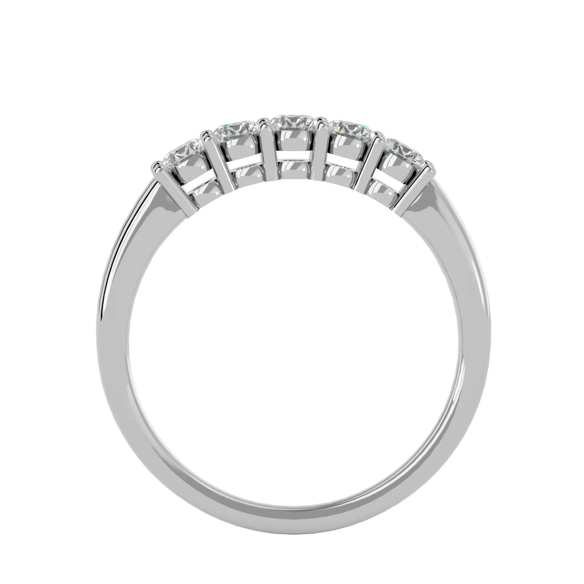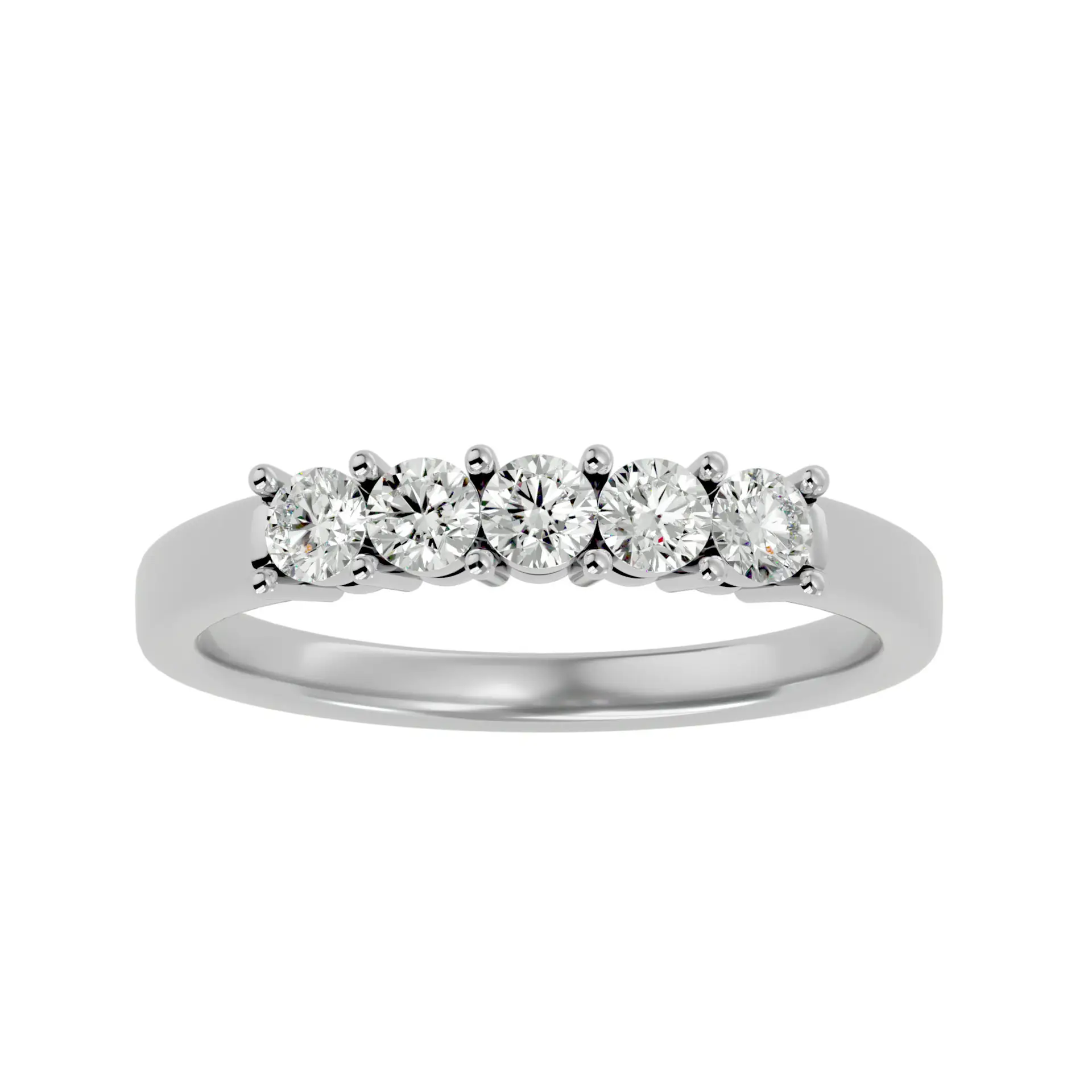 טבעת זהב לבן 14 קראט משובצת ב־5 יהלומי מעבדה עגולים סה"כ 0.50 קארט, באיזון מושלם של ברק וסטייל. מתאימה כתוספת לטבעת אירוסין או כטבעת בפני עצמה – נגיעה מדויקת של יוקרה ליום-יום או לאירוע מיוחד.