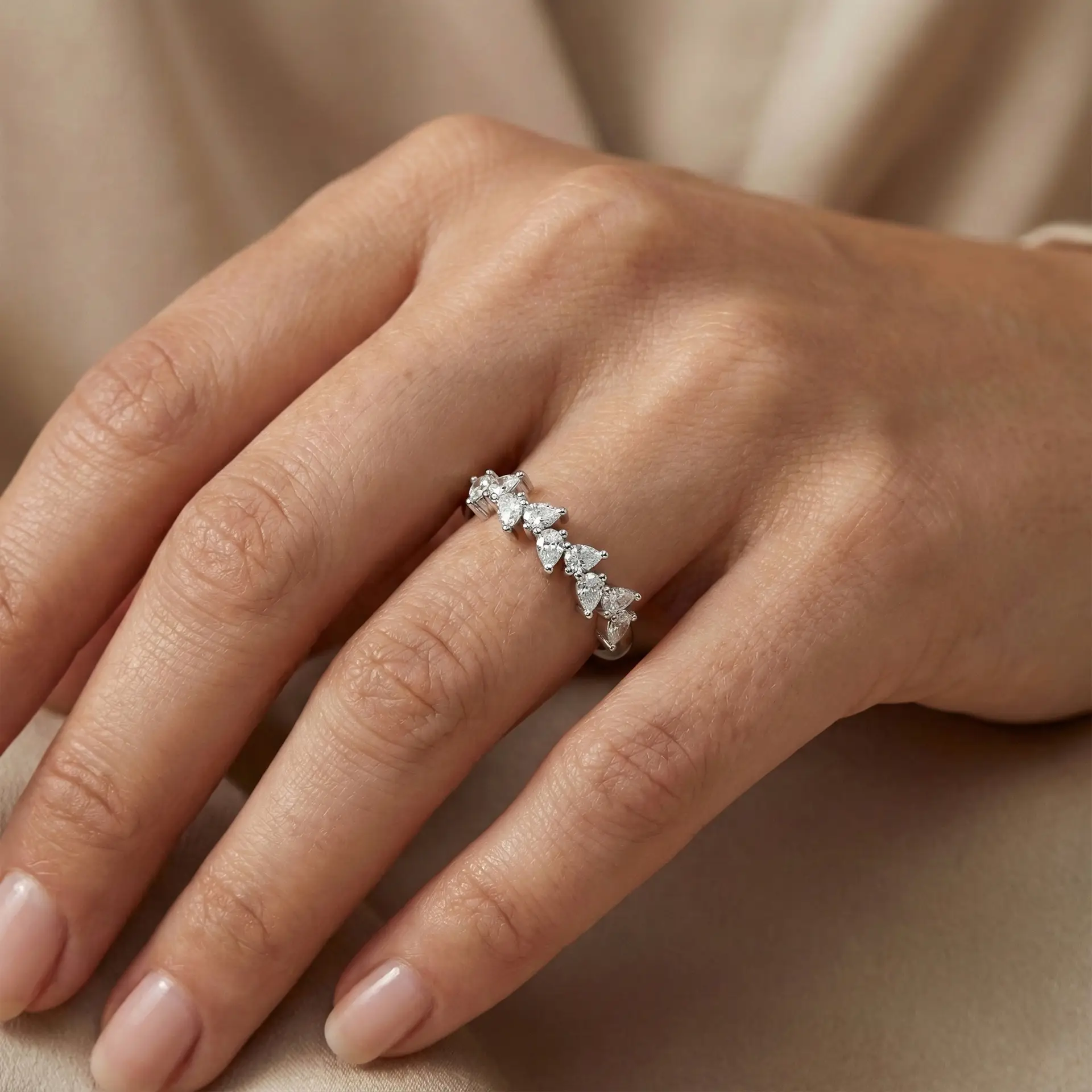 טבעת יהלומי טיפה מגלמת יוקרה אלגנטית ונשיות עוצמתית.