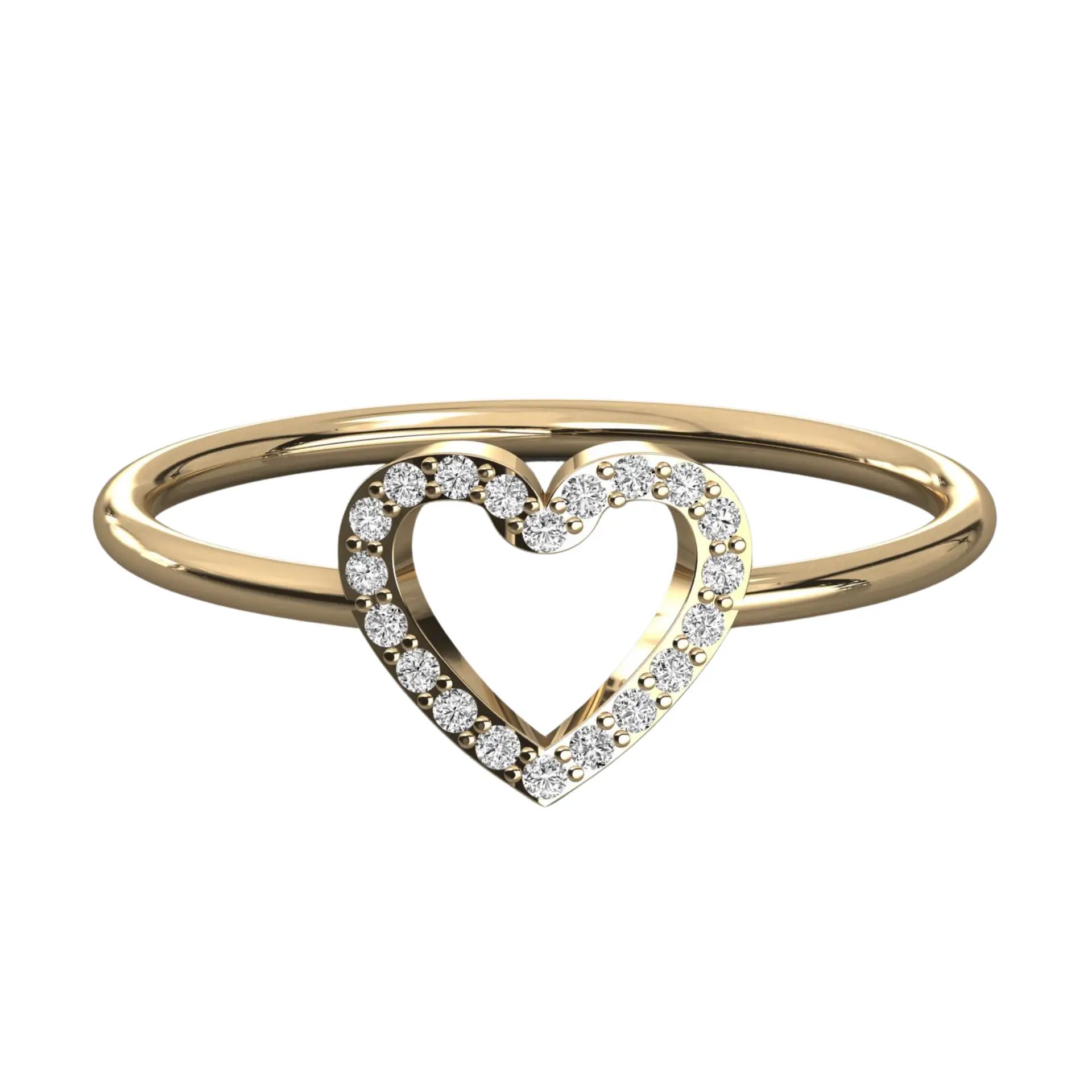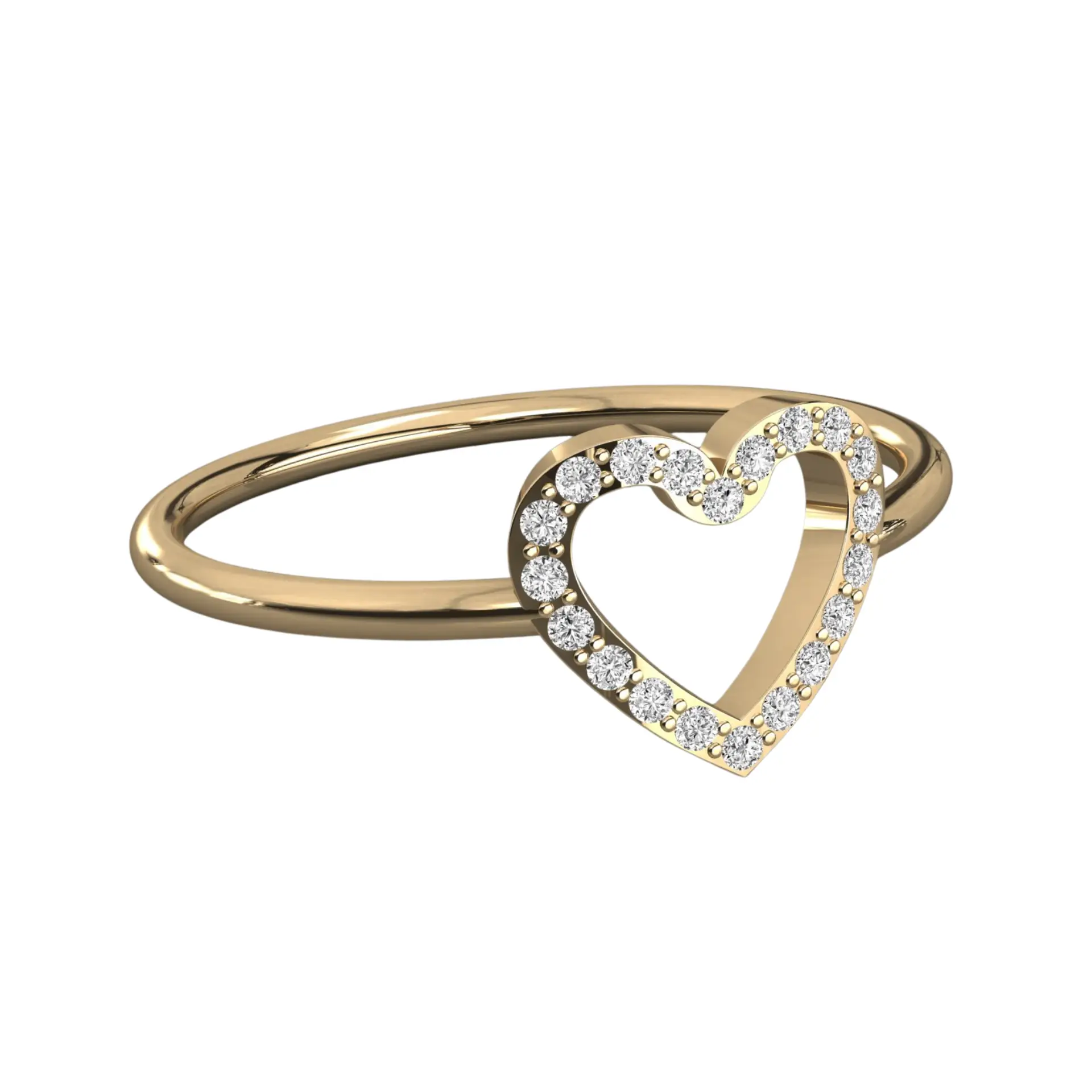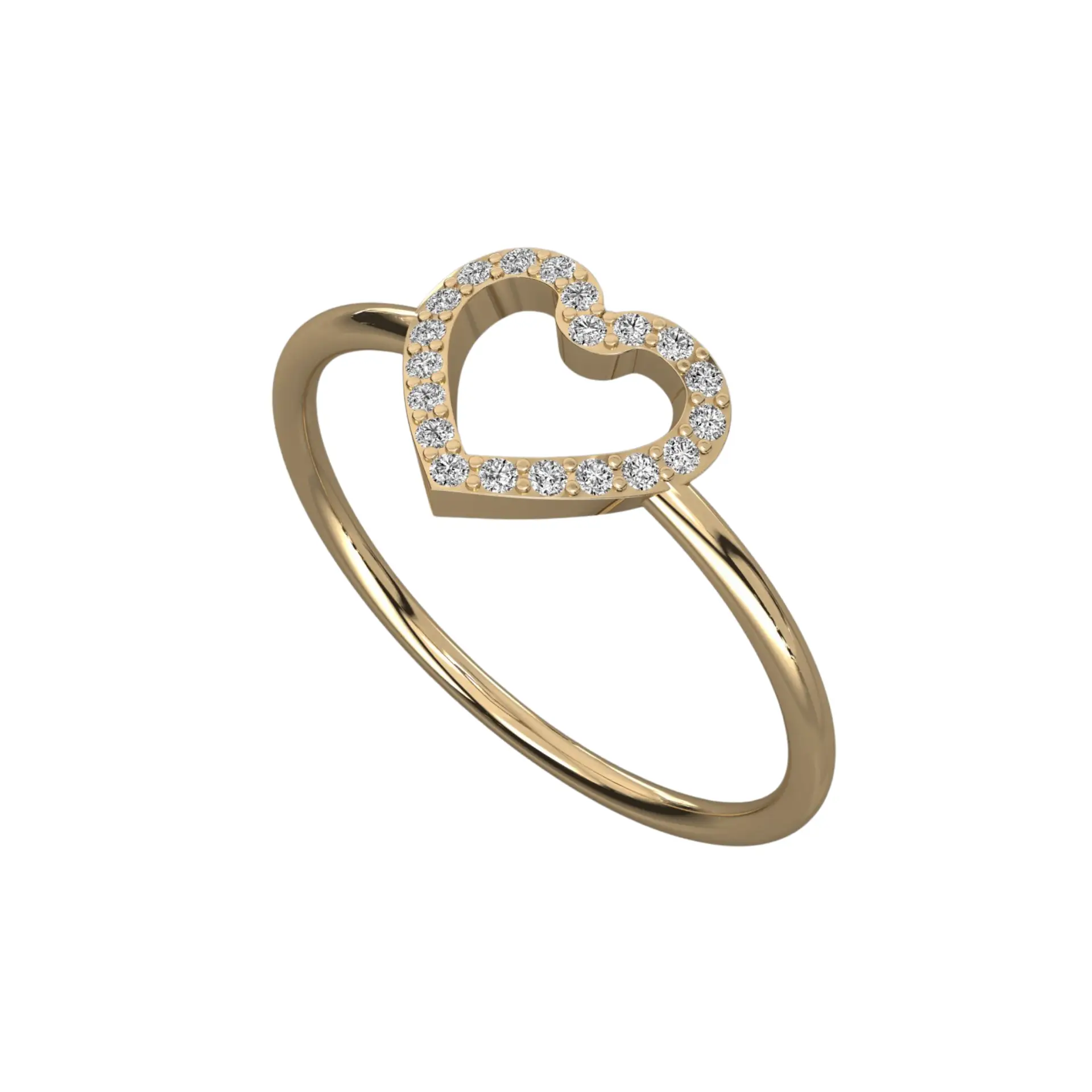 הטבעת משובצת ב-20 יהלומים זעירים ומושלמים (בגודל 1 מ"מ כל אחד), היוצרים יחד צורת לב פתוח ונקי. השיבוץ המיקרוסקופי נעשה בעבודת יד מוקפדת תחת מיקרוסקופ, כדי להבטיח שכל יהלום יושב במקומו ומחזיר אור בצורה מקסימלית, למרות גודלו העדין.