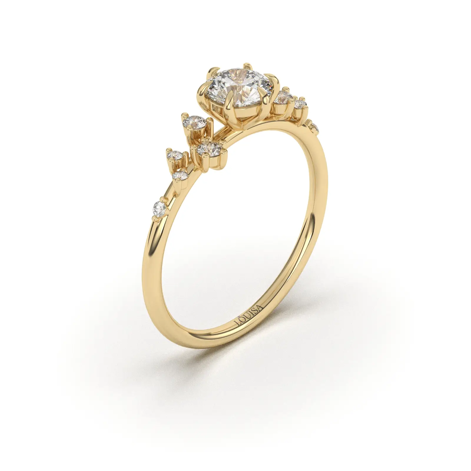 היהלומים הקטנים משובצים בגבהים ובגדלים משתנים, ויוצרים מראה של אשכול כוכבים נוצץ או שובל אור המטפס בעדינות לעבר היהלום המרכזי.