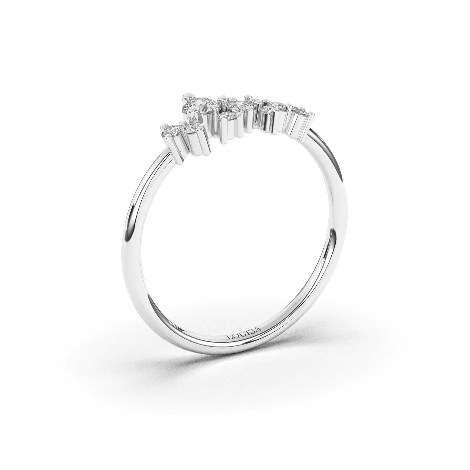 שיבוץ זה מאפשר לאור לחדור אל היהלומים מכל הכיוונים וליצור החזרי אור מקסימליים, תוך שמירה על מראה קליל, אוורירי ואלגנטי.