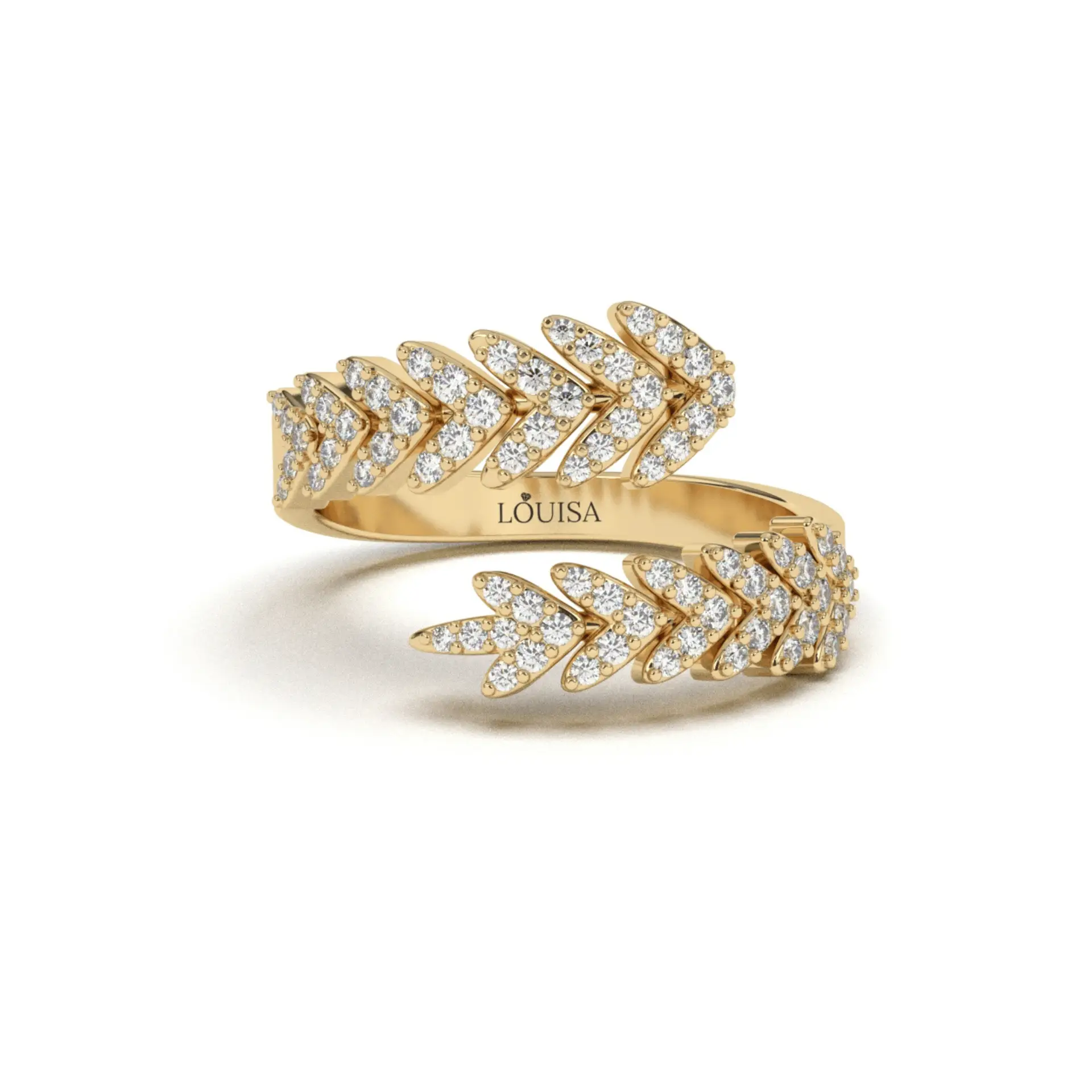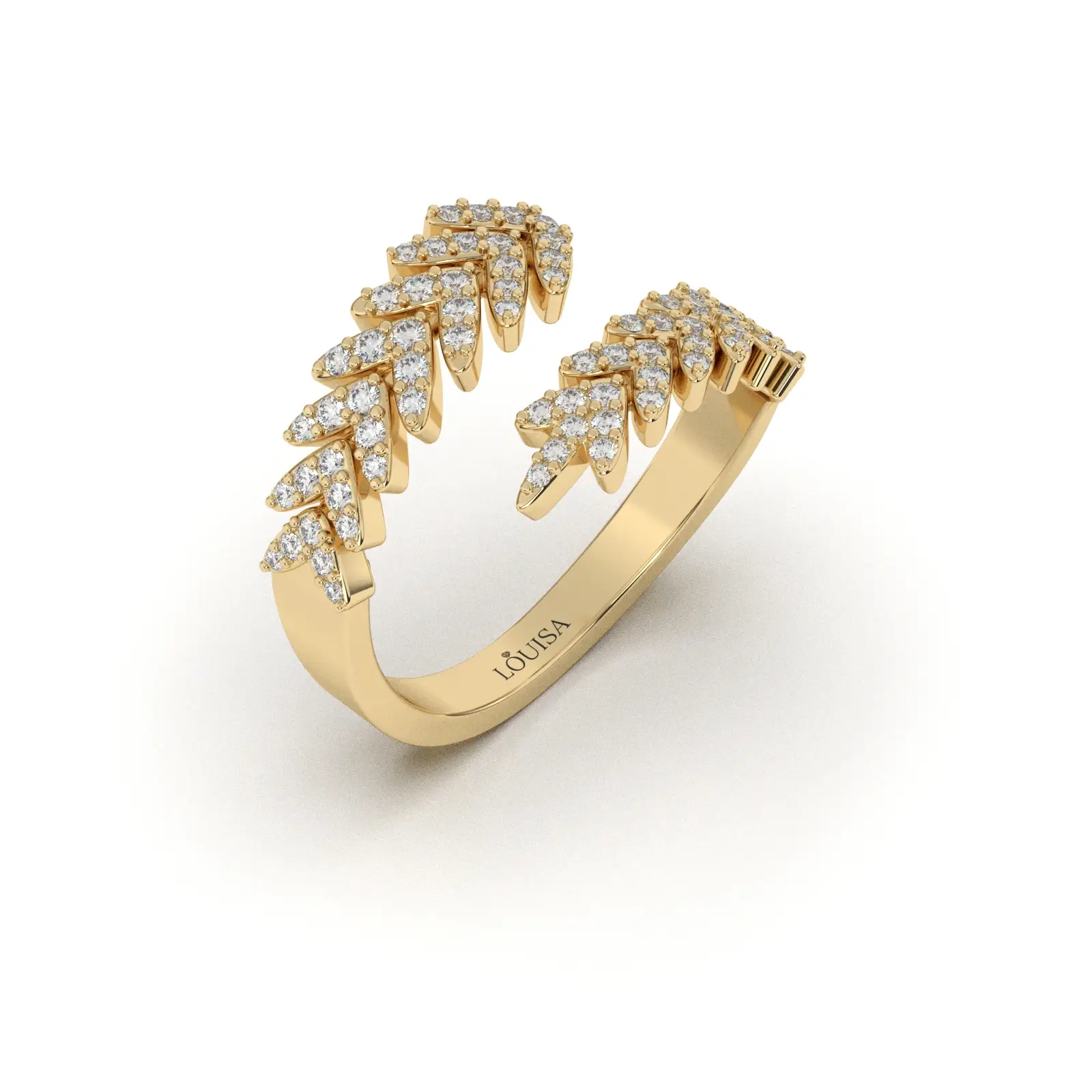 • עיצוב: טבעת פתוחה עם עלים משובצים.