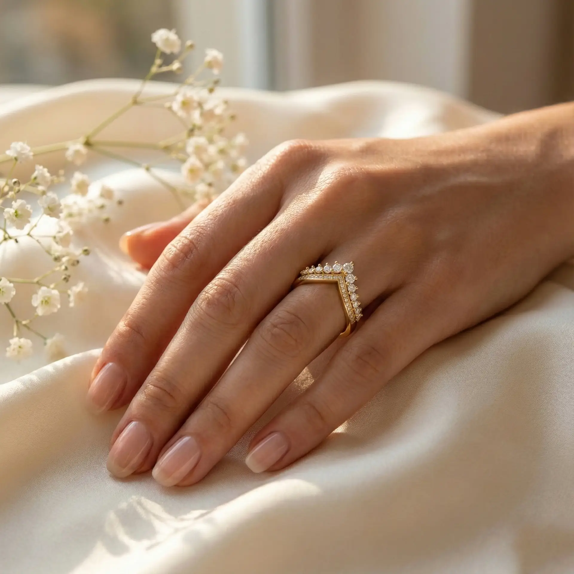המבנה הייחודי בצורת V מחמיא לכל יד, מדגיש את הקווים הנשיים ומוסיף זוהר בכל תנועה.