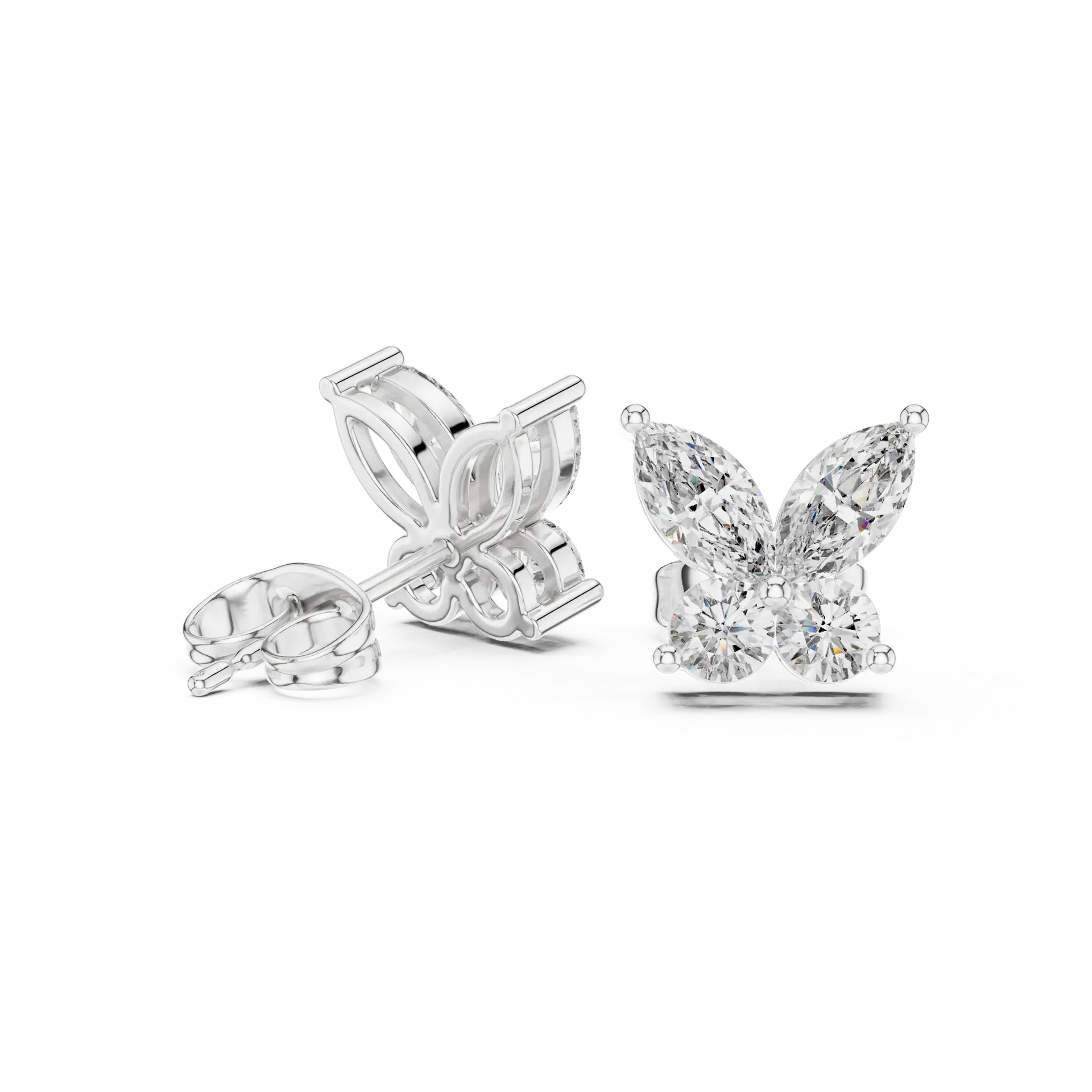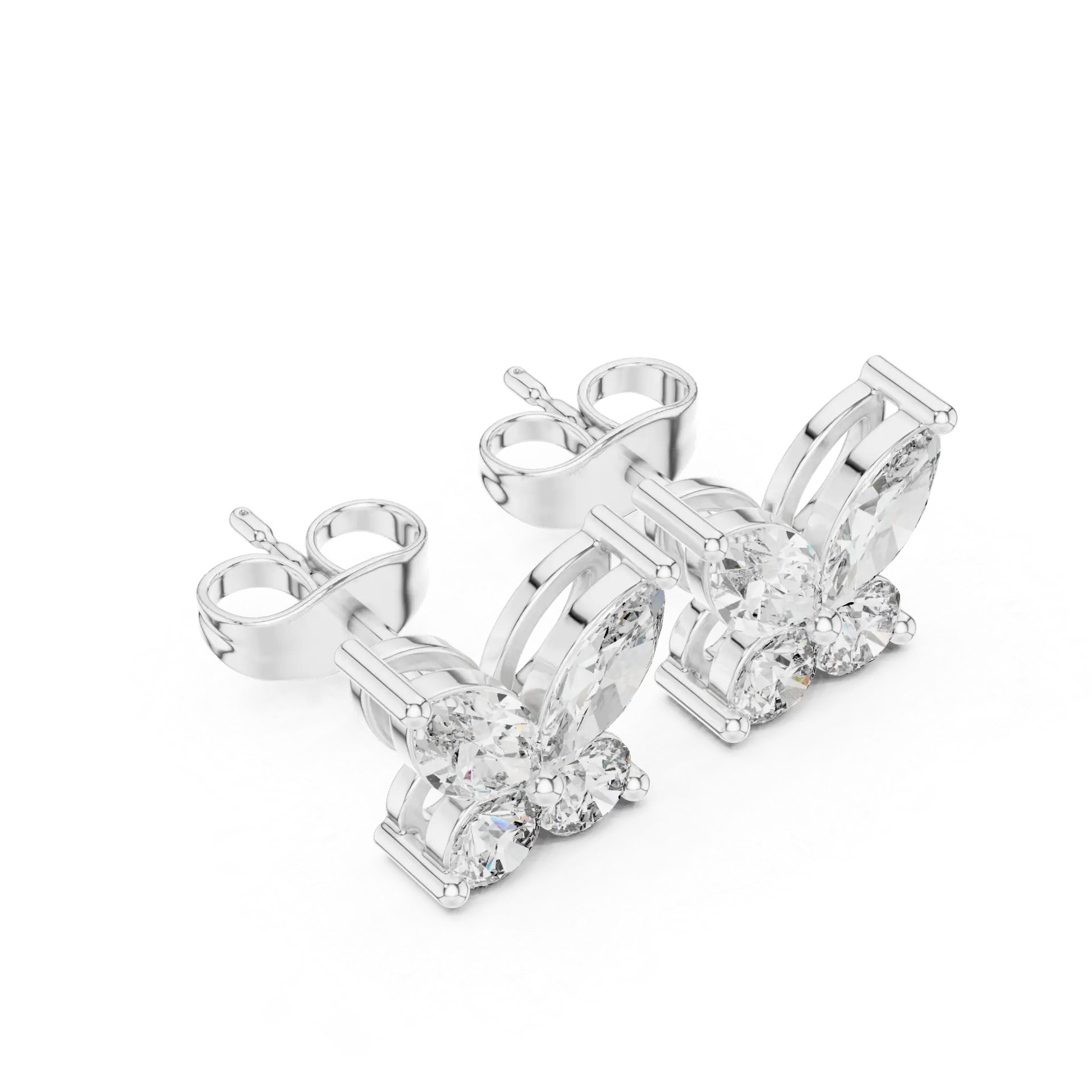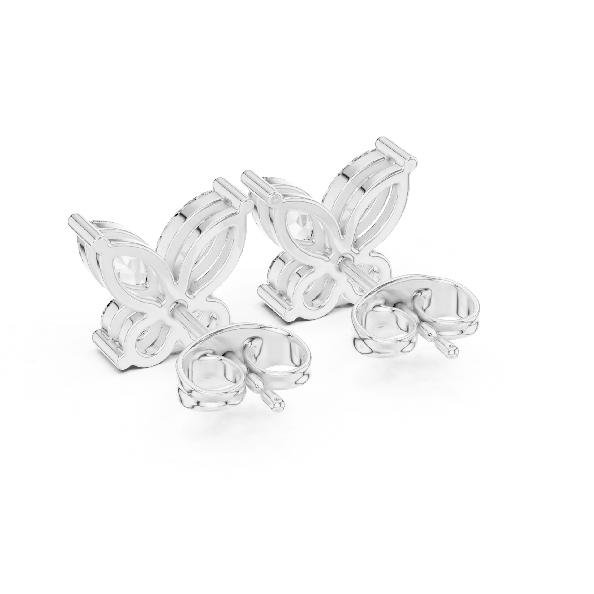 העגילים בנויים במלאכת מחשבת של שיבוץ, היוצרת אשליה של יהלום אחד גדול ומרשים בצורת פרפר מושלם.