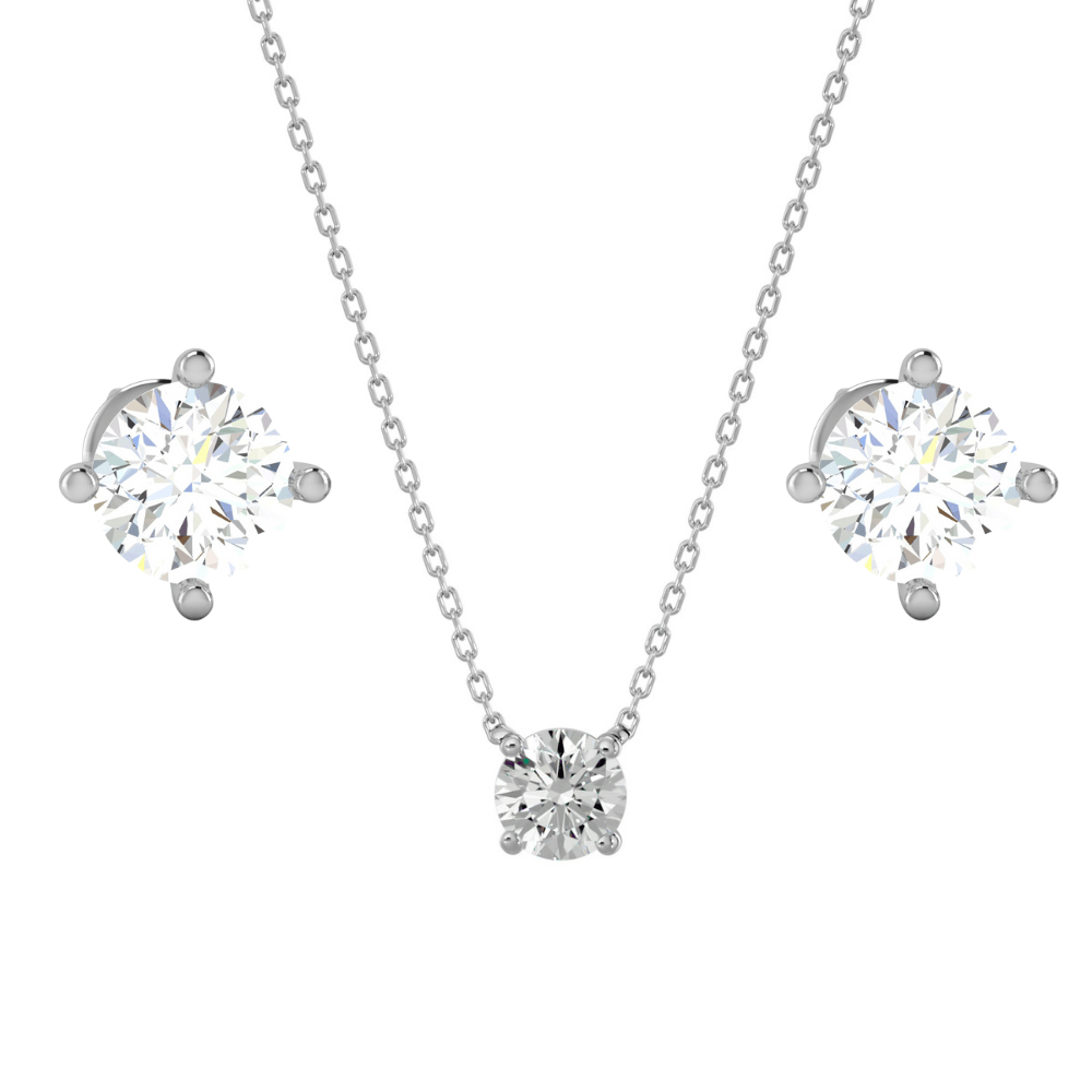 סט יוקרתי הכולל שרשרת זהב לבן 14K משובצת יהלום מעבדה במשקל 1.00 קראט, יחד עם זוג עגילי זהב 14K, כל עגיל משובץ ביהלום מעבדה של 1.00 קראט